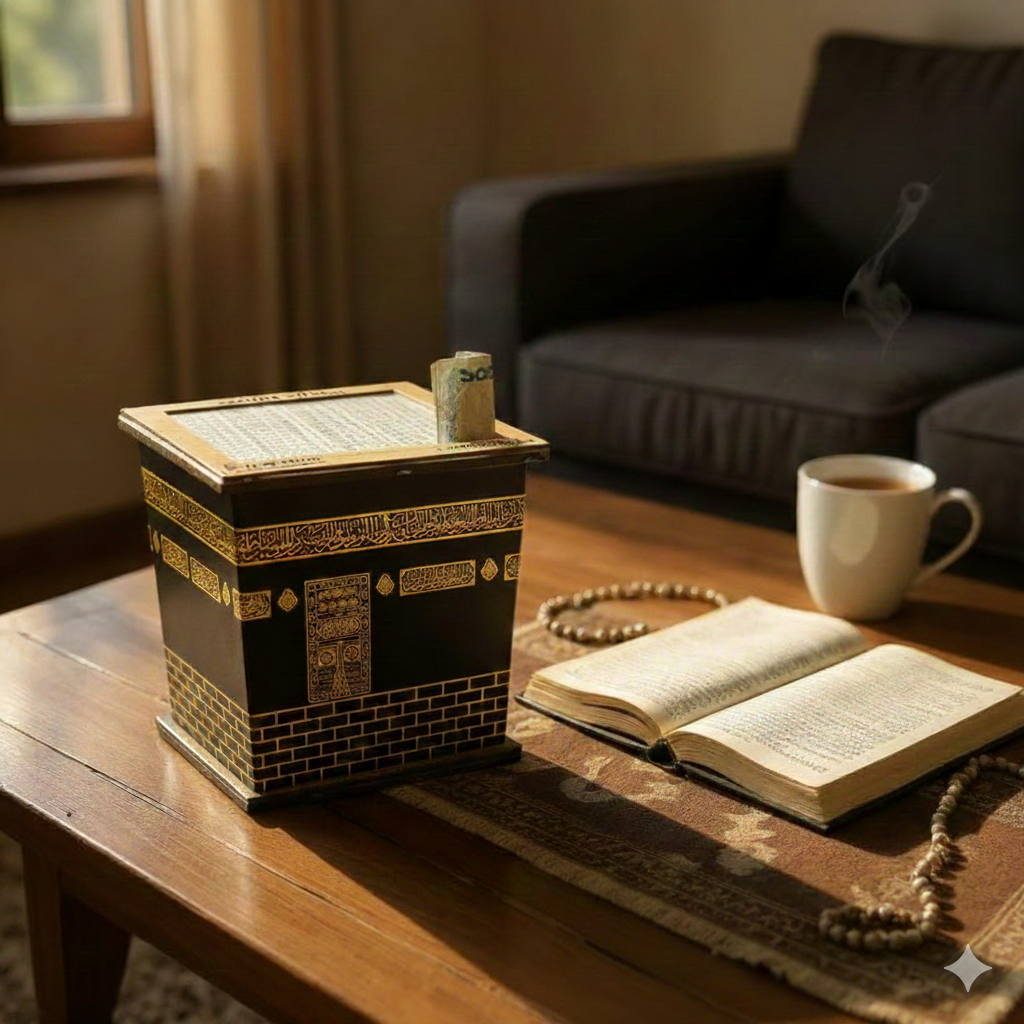 উমরাহ সঞ্চয় ব্যাংক – Wooden Money Box (8″ × 7½″, 150,000 TK Capacity)