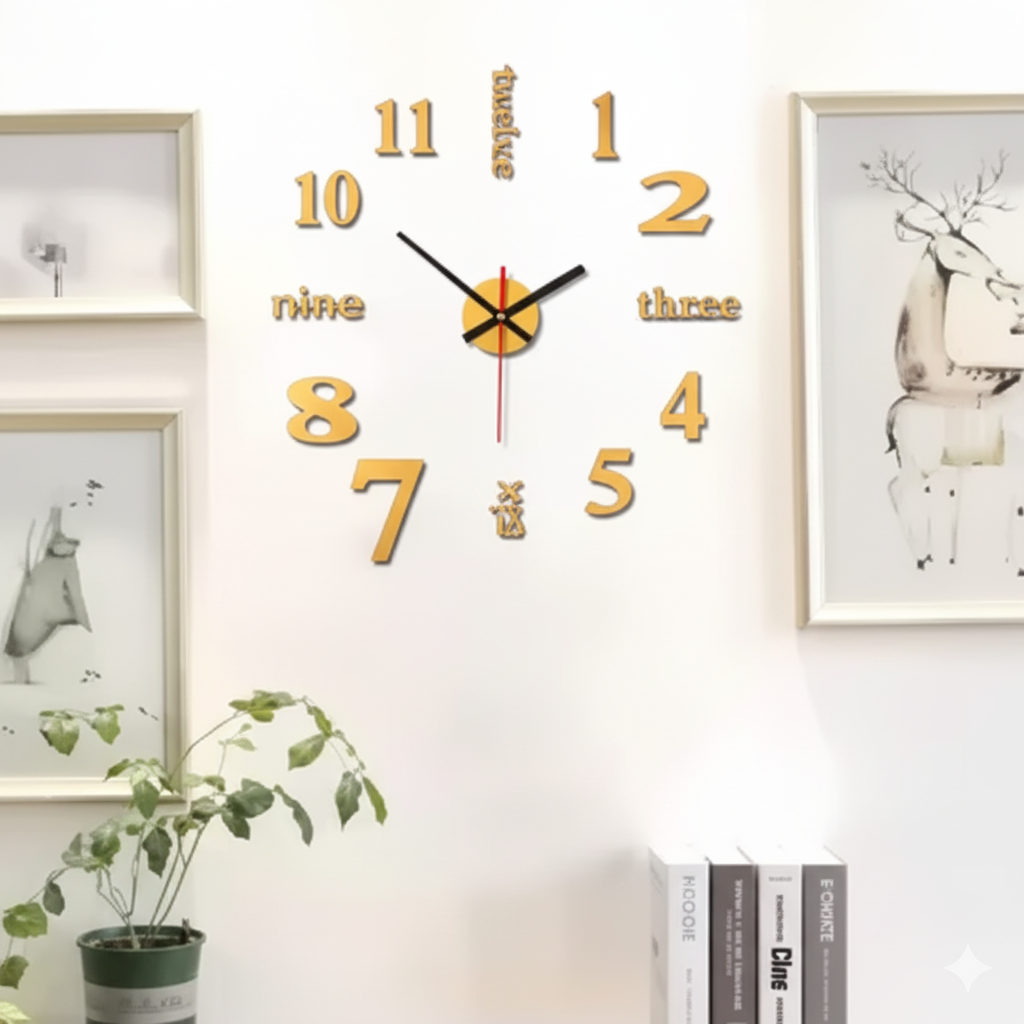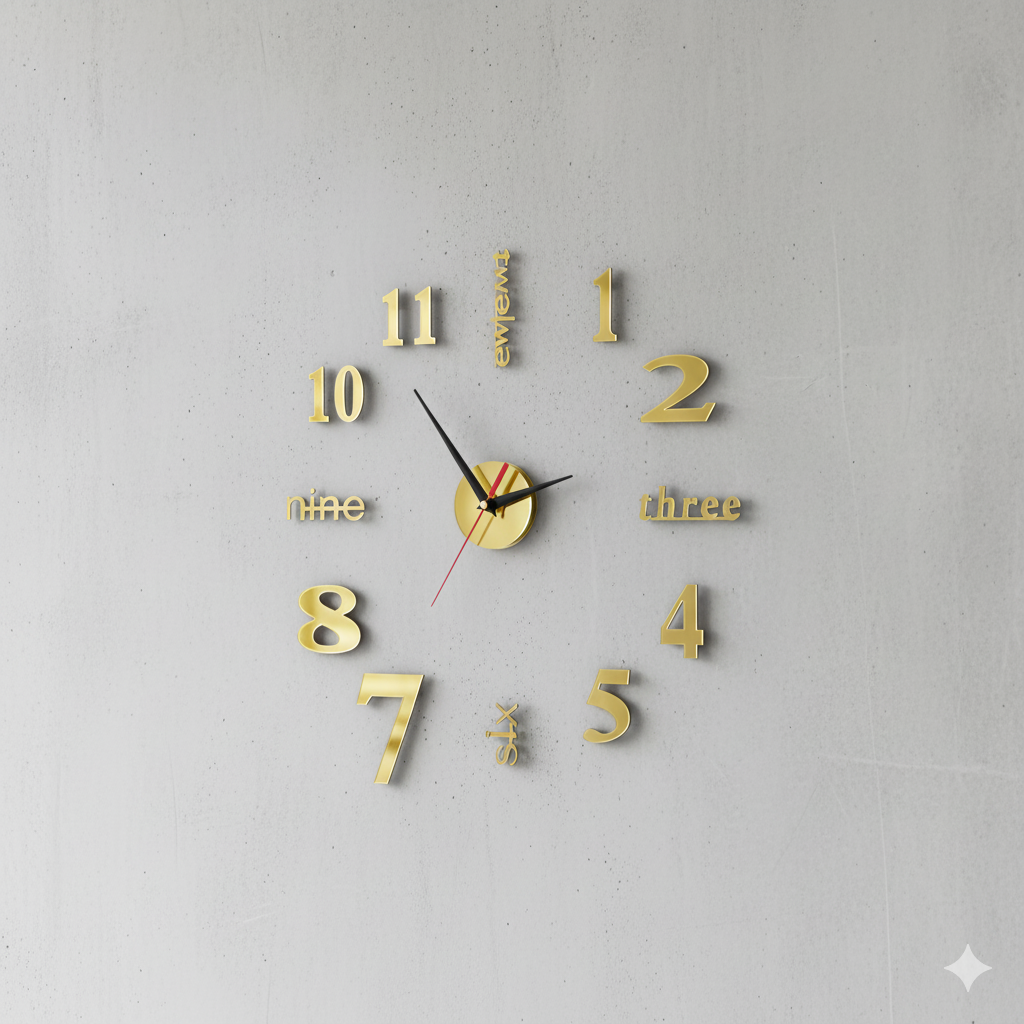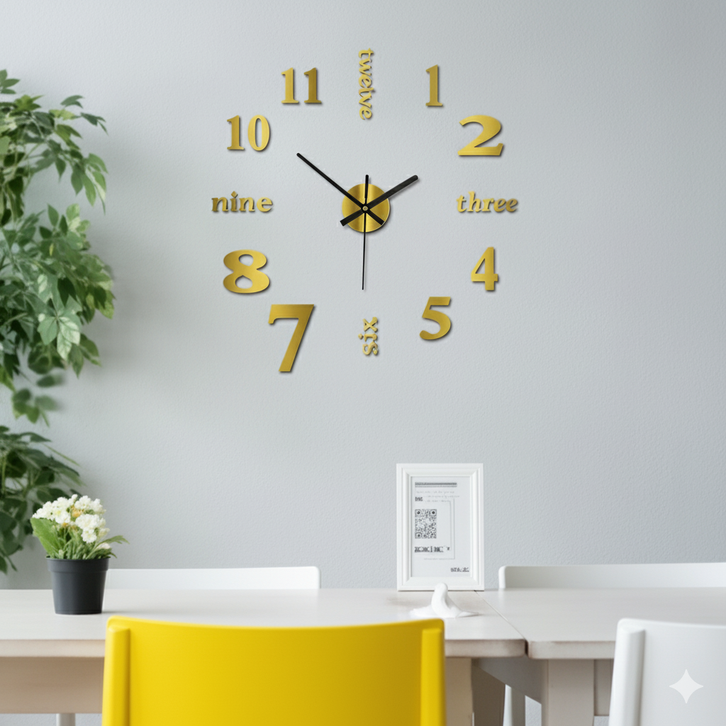 ডিজিটাল 3D দেয়াল ঘড়ি - Gold